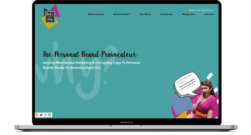 Lucy with a Why came to us to give her website a complete overhaul. Lucy wanted something fun, creative and most importantly stand out from the crowd. Lucy, quite rightly dubs herself as the “Personal Brand Provocateur” and with a strong following on social media she has built up it’s not hard to see why!