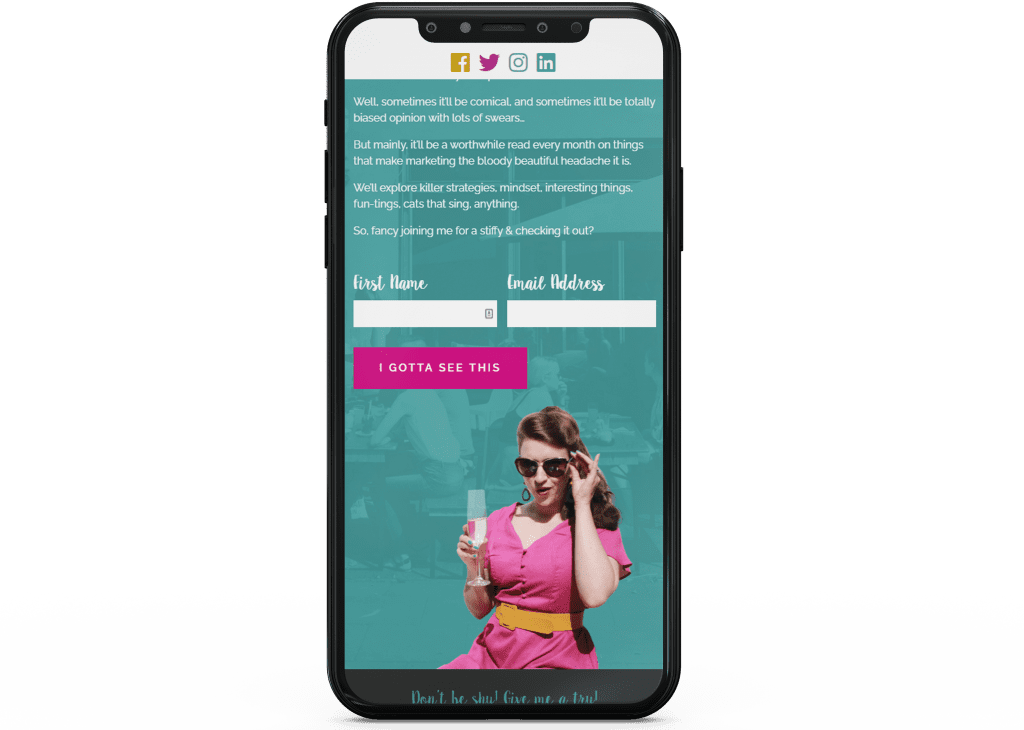 We also added in loads of fun animations, quirky testimonials and plenty of sass (there’s even a poo emoji) that was the dreamfit for the brand’s and Lucy’s identity. Lucy wanted a site that represented her, a fun and mischevious marketeer with a foul mouth… so that’s exactly what we gave her!
